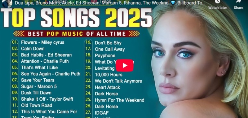 Dua Lipa, Bruno Mars, Adele, Ed Sheeran, Maroon 5, Rihanna