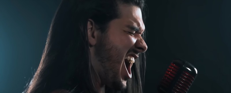 Traditional Christian hymn Amazing Grace being performed by a heavy metal singer.